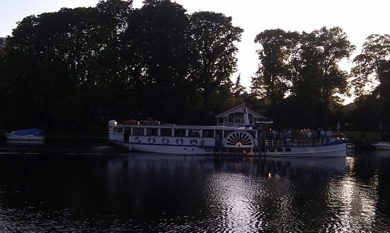And the boat that they're on is the New Southern Belle, run by Turk's launches, which runs a river cruise route on the Thames between Hampton Court, Kingston upon Thames, and Richmond. Where the video is shot is a little further down the river near Weybridge.